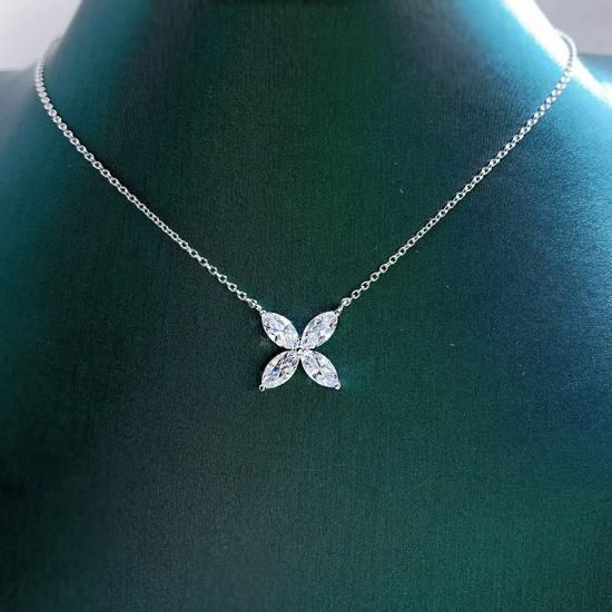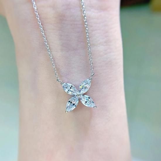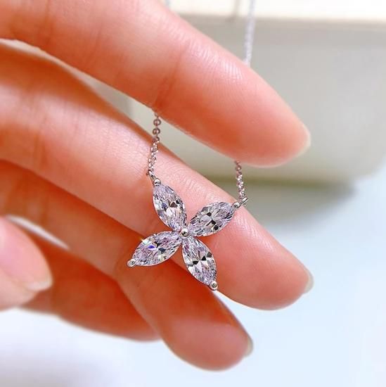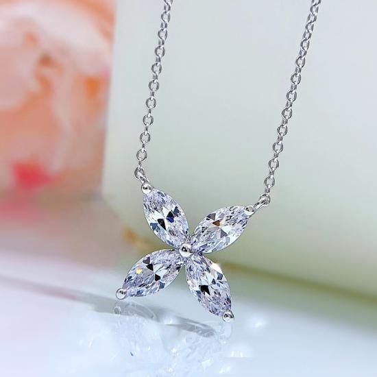 高品質 フラワー ネックレス ダイヤ風